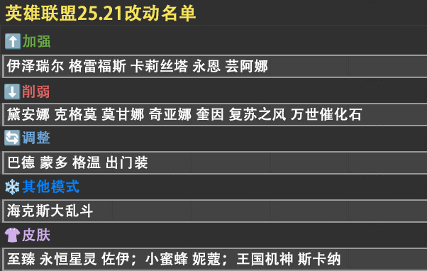 LOL25.21前瞻 格雷福斯…芸阿娜加强 复苏之风…黛安娜削弱 出门装…格温调整