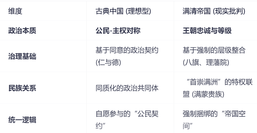 并非简单的情绪化排满清这个政权,而是一套试图用古典“民贵君轻”的儒学思想去解构清朝统治者构造的合法性。清朝是一个“西方式帝国”,而古典中国应该是一个“民族国家”。承认清朝的“贡献”,就等于承认了封闭等