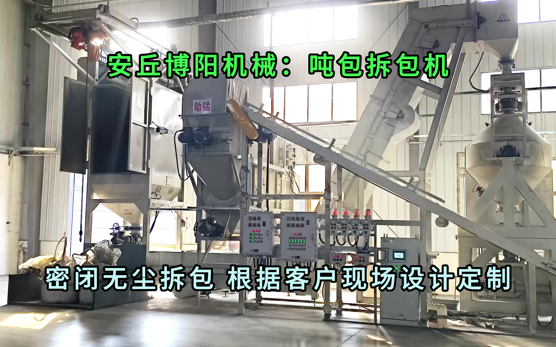 0次播放 | 00:38固化剂吨包拆袋机工作原理,吨袋自动拆包装置生产线