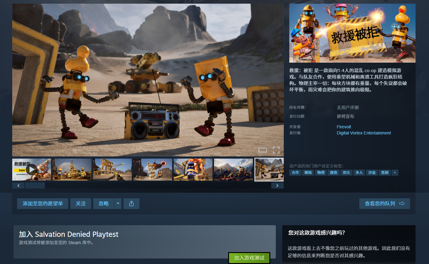 开发商Firevolt与发行商Digital Vortex Entertainment正式公布合作建造模拟游戏《救援:被拒》(Salvation Denied),支持1至4人联机。游戏已在Steam平