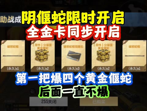 阴偃蛇限时开启!全金卡同步开启!