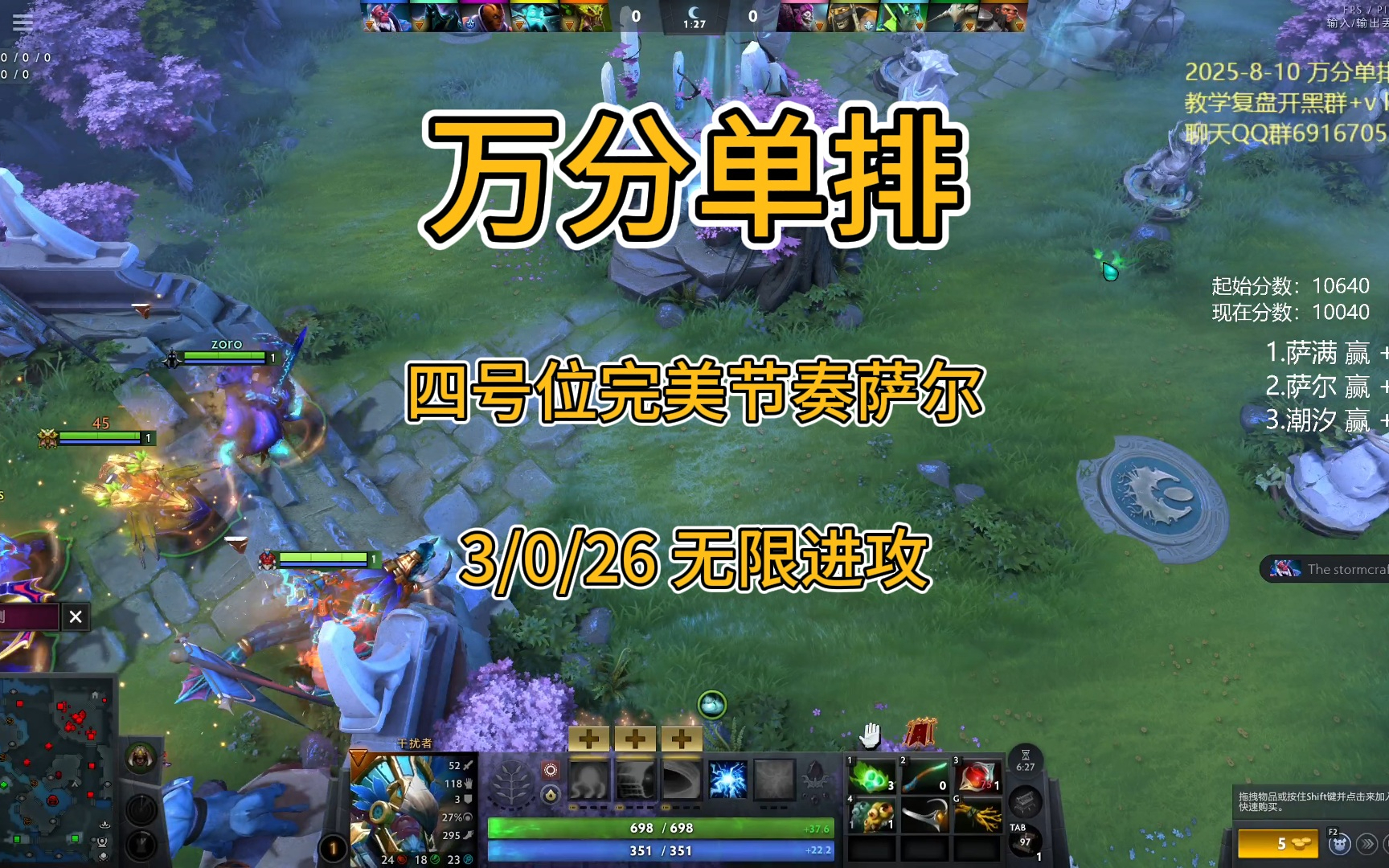 【四号位萨尔】万分单排完美节奏3/0/26,无限进攻