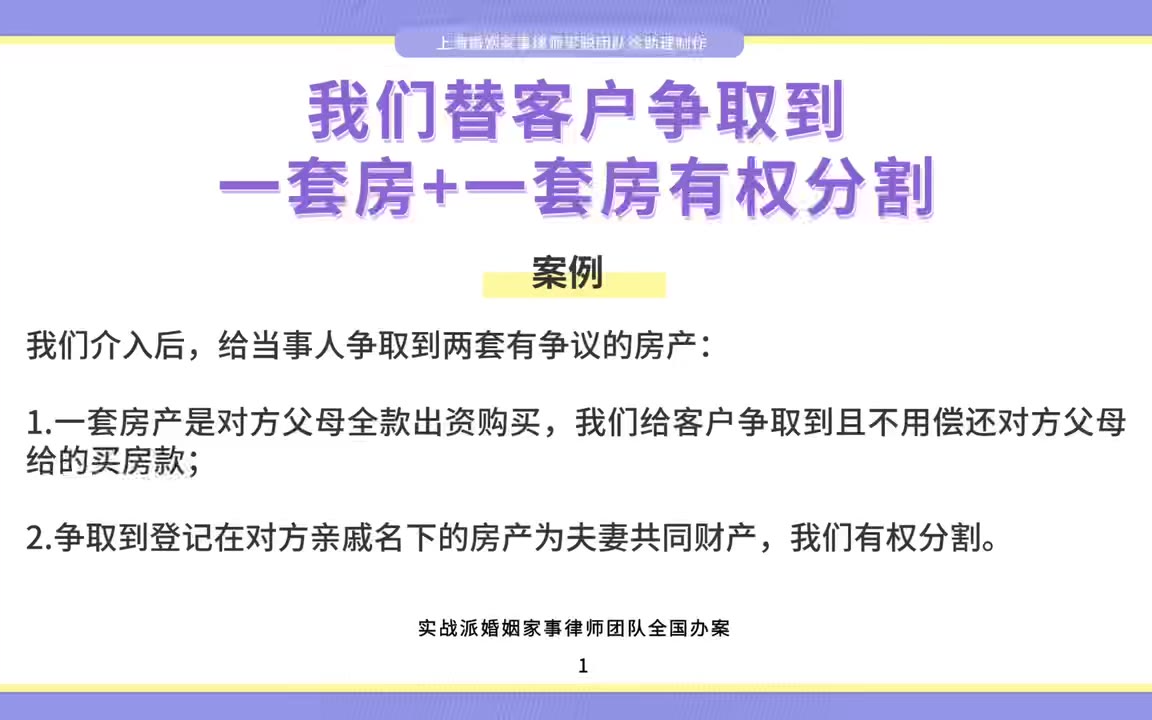 上海离婚律师梁聪律师:我们替客户争取到一套房+一套房有权分割