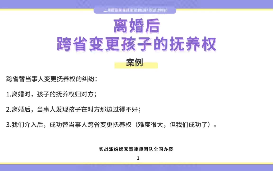 0次播放 | 00:13上海离婚律师梁聪律师团队原创:离婚后,跨省变更孩子的抚养权