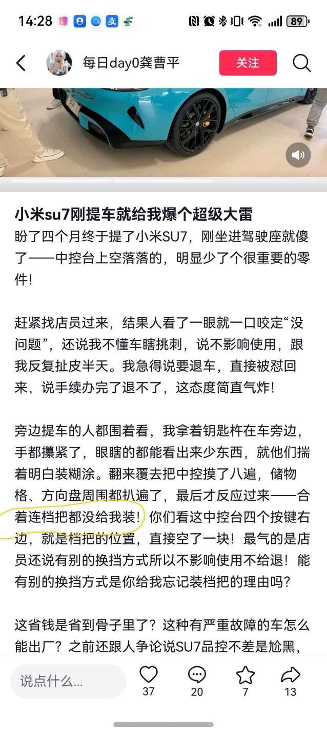 绿化带战神,已经发展到看到绿色就冲上去的地步其他截图下面这个吓人 人还在吗累总 给自媒体 塞钱的时候 都不叮嘱认真点吗2023款小米YU7 什么鬼?留档用户画像别惹小米车主 当心你的小命 也要当心你的