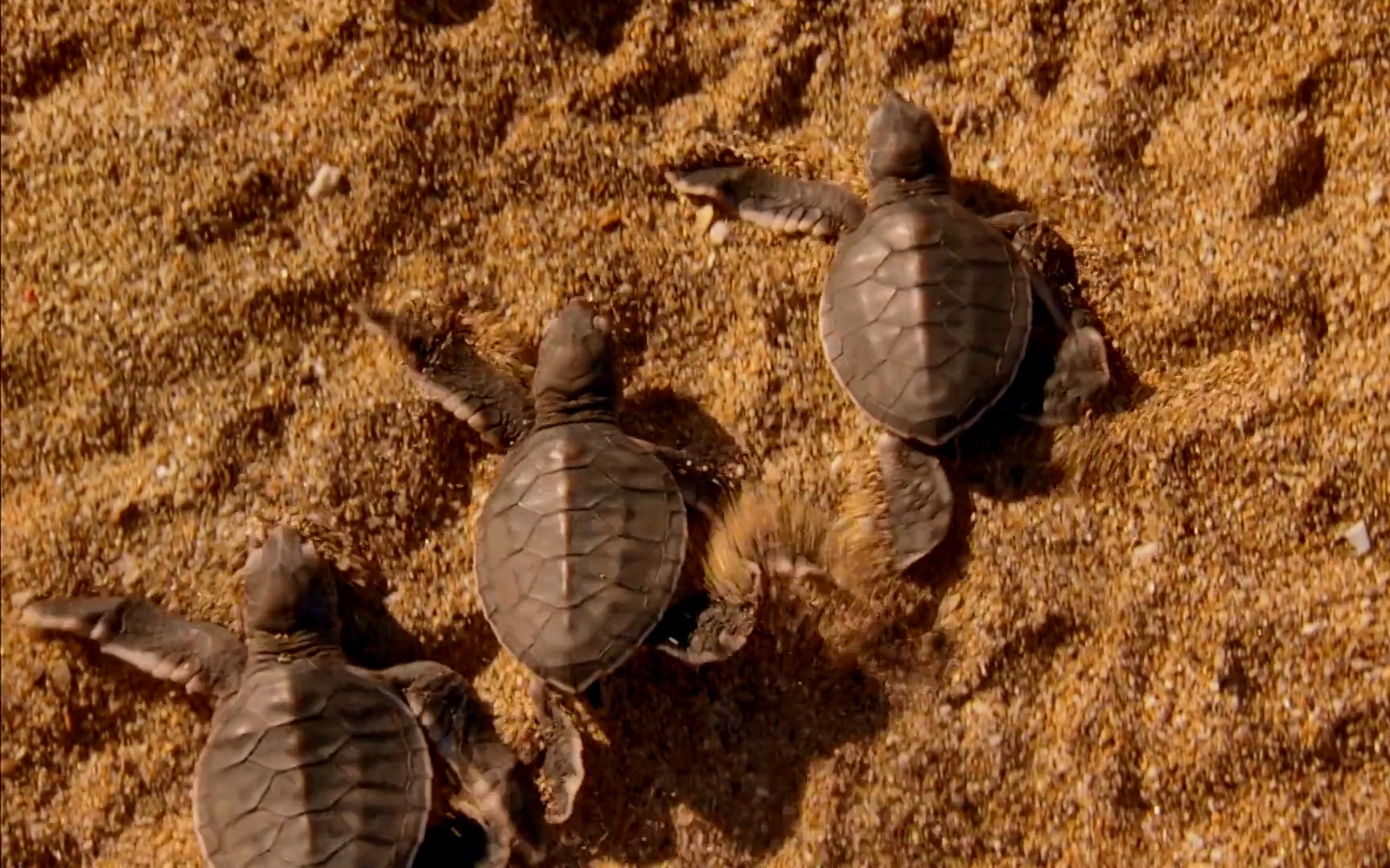 共8张腹背受敌的小海龟向着大海勇往直前!这场生命的冲刺胜算几何?