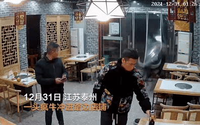 19次播放 | 00:29蛮牛冲撞!疯牛冲进店铺顶飞男子,旁边男子小心翼翼将其拖到安全区域