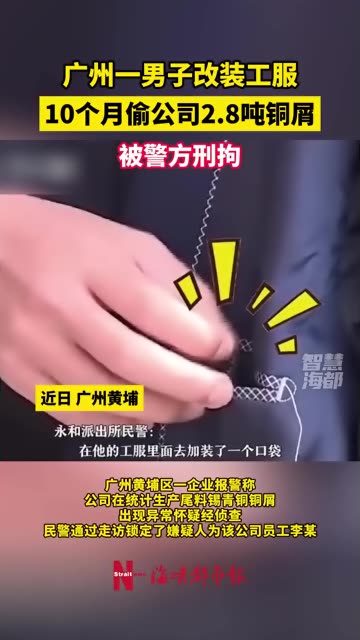 146次播放 | 01:03广州一男子改装工服,10个月偷公司2.8吨铜屑,被警方刑拘
