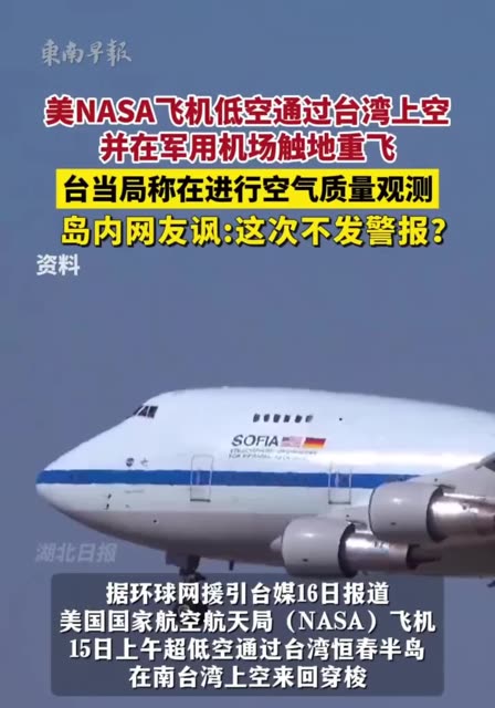 25次播放 | 00:10美NASA飞机低空通过台湾上空并在军用机场触地重飞,岛内网友讽:这次不发警报?