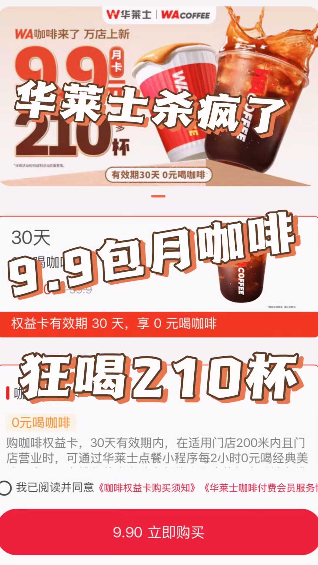华莱士杀疯了!9.9 包月咖啡,狂喝 210 杯