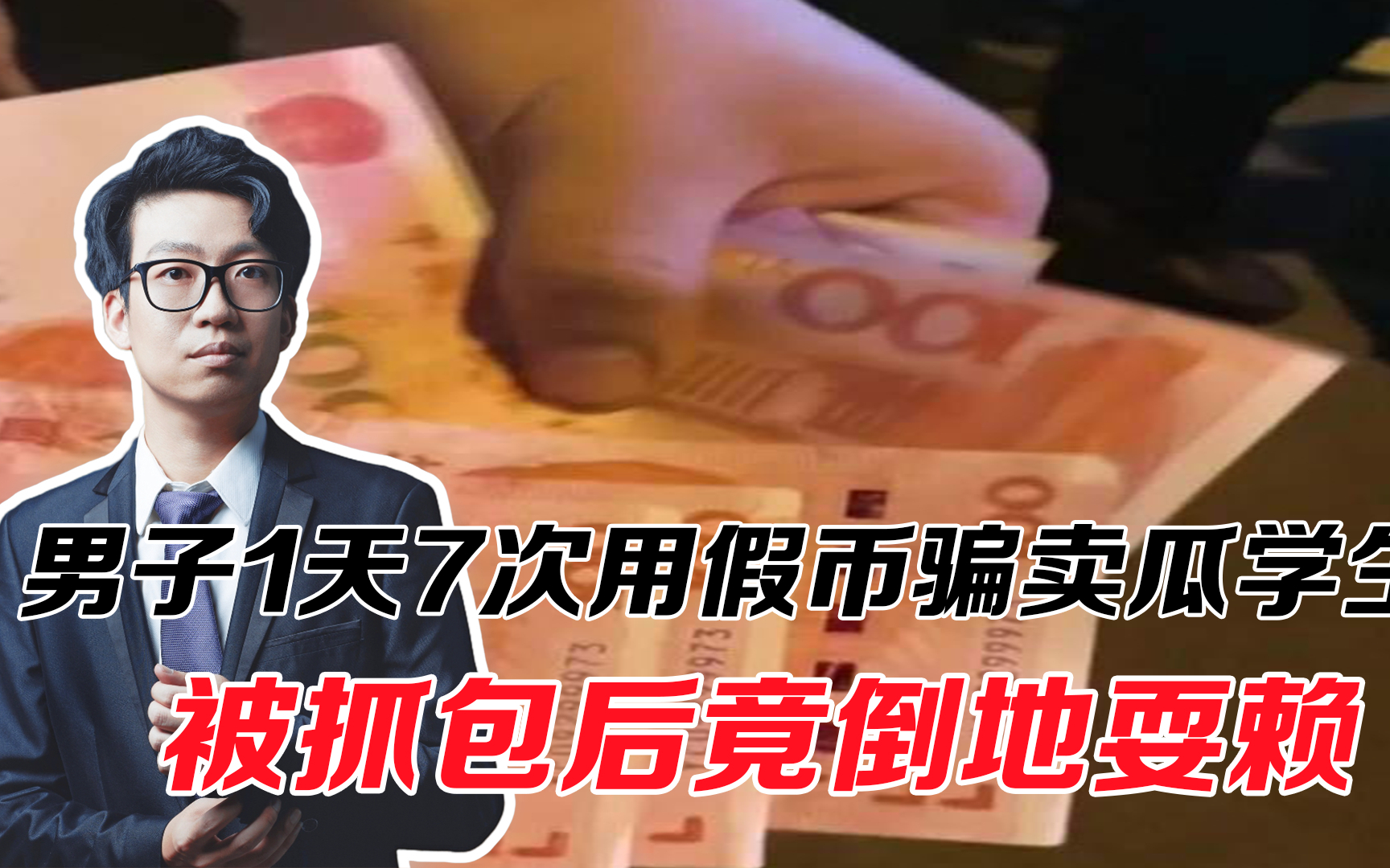 男子1天7次用假币骗卖瓜学生,抓包后倒地耍赖 ,真是缺德又缺心