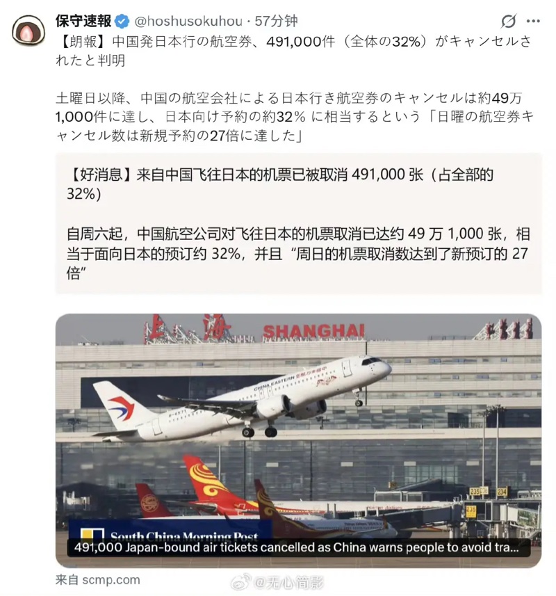共4张日本人对中国取消50万张赴日机票感到高兴
