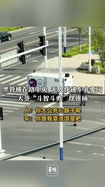 • 黑管横在路中央 无人快递车非要闯,大爷“斗智斗勇”摆锥桶 人:你怎么死心眼子呢 车:你跟我耍流...