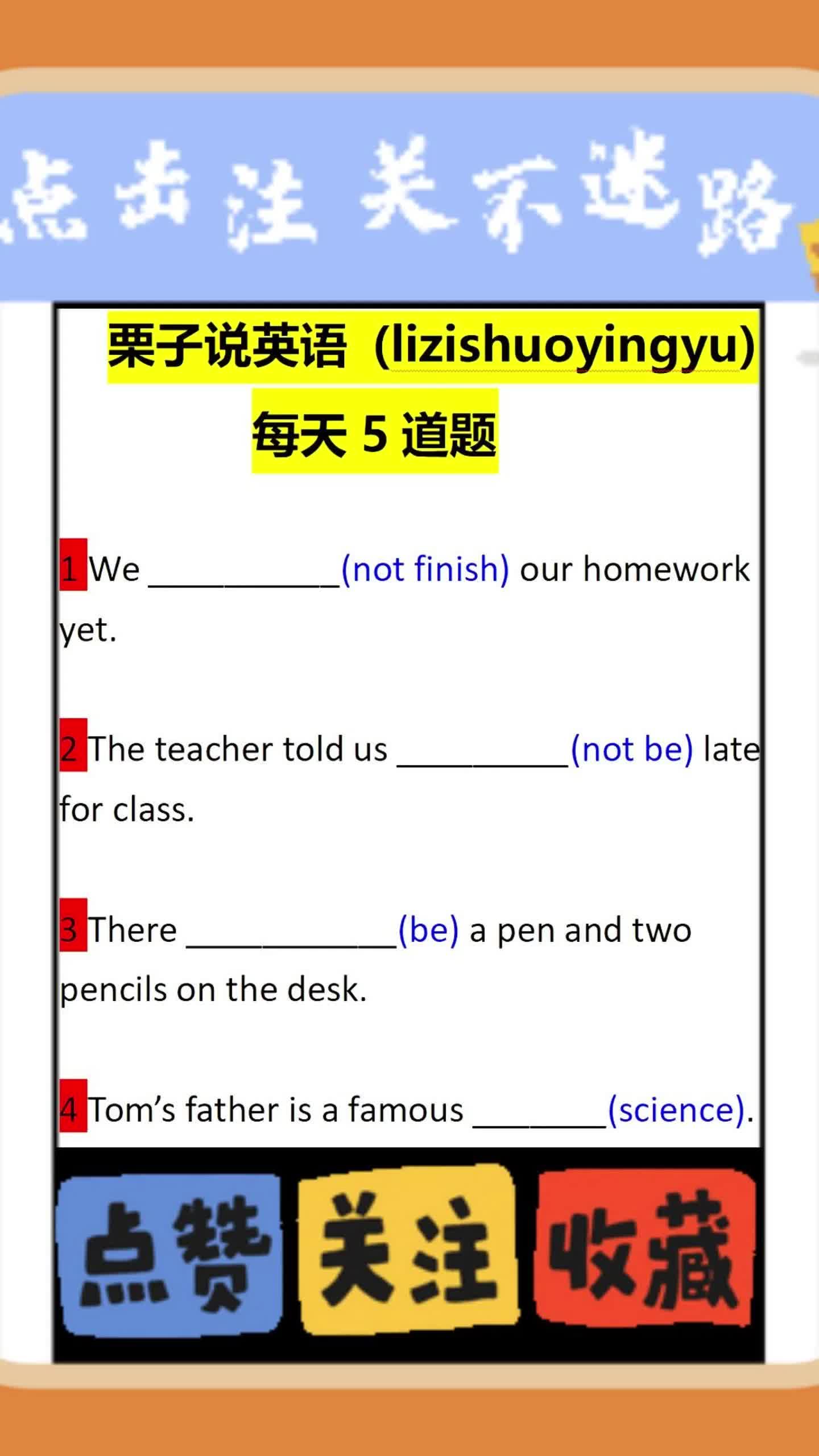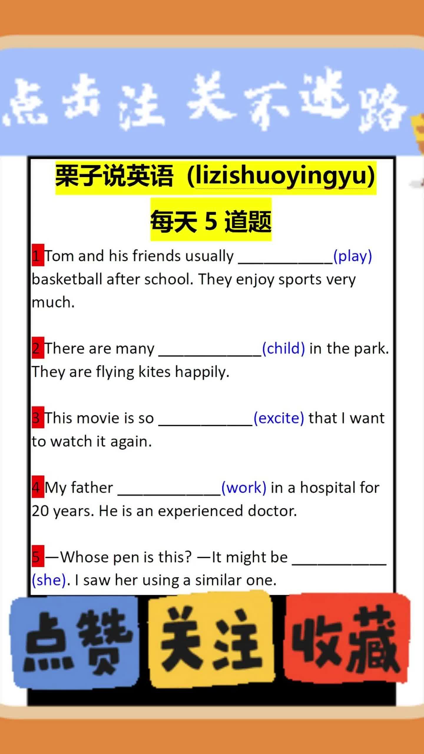 19次播放 | 01:15栗子说英语:每天5道题适当形式填空0904