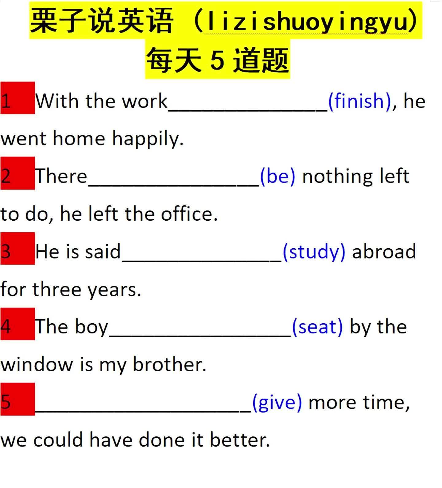 47次播放 | 01:18每天5道题:用所给单词的适当形式填空0215