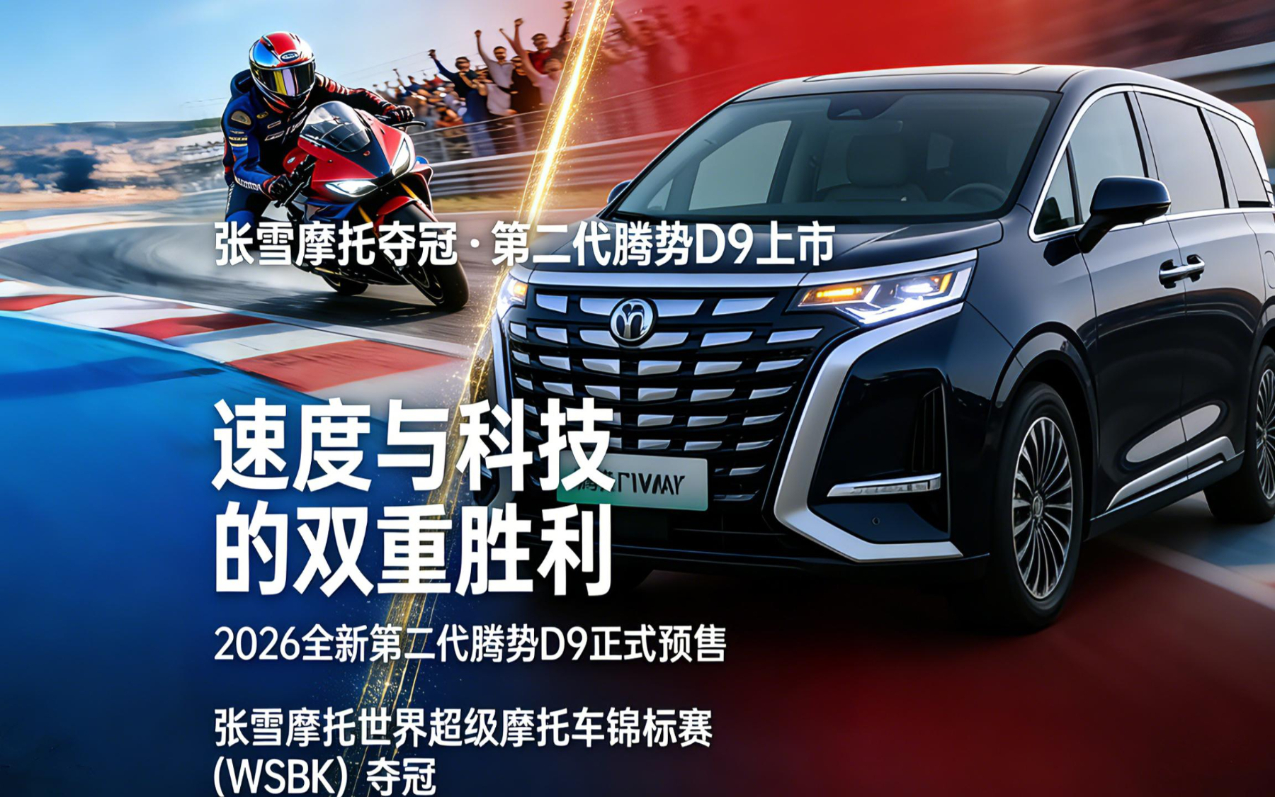 共8张中国智造双巅峰!张雪夺冠,腾势D9 38.98万起预售启航