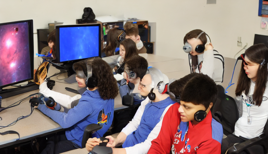 《火星大学》电子游戏的一张截图展示了一次星系飞行。简查尔顿, CCBY当我还是个青少年时,我意识到了电子游戏在教育中的潜力。那些在学校考试不及格的高中同学,却能记住在他们喜欢的电子游戏(比如《龙与地下