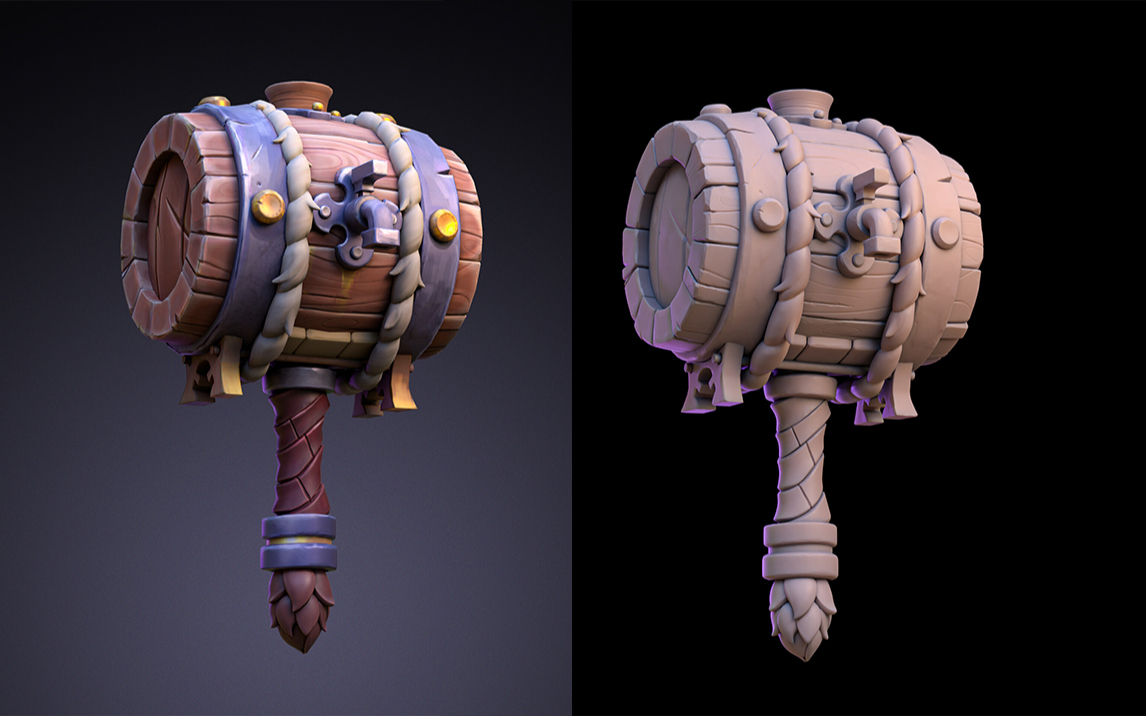 【次世代pbr】风格化武器木锤模型制作教程。3dmax、zbrush,maya,pt