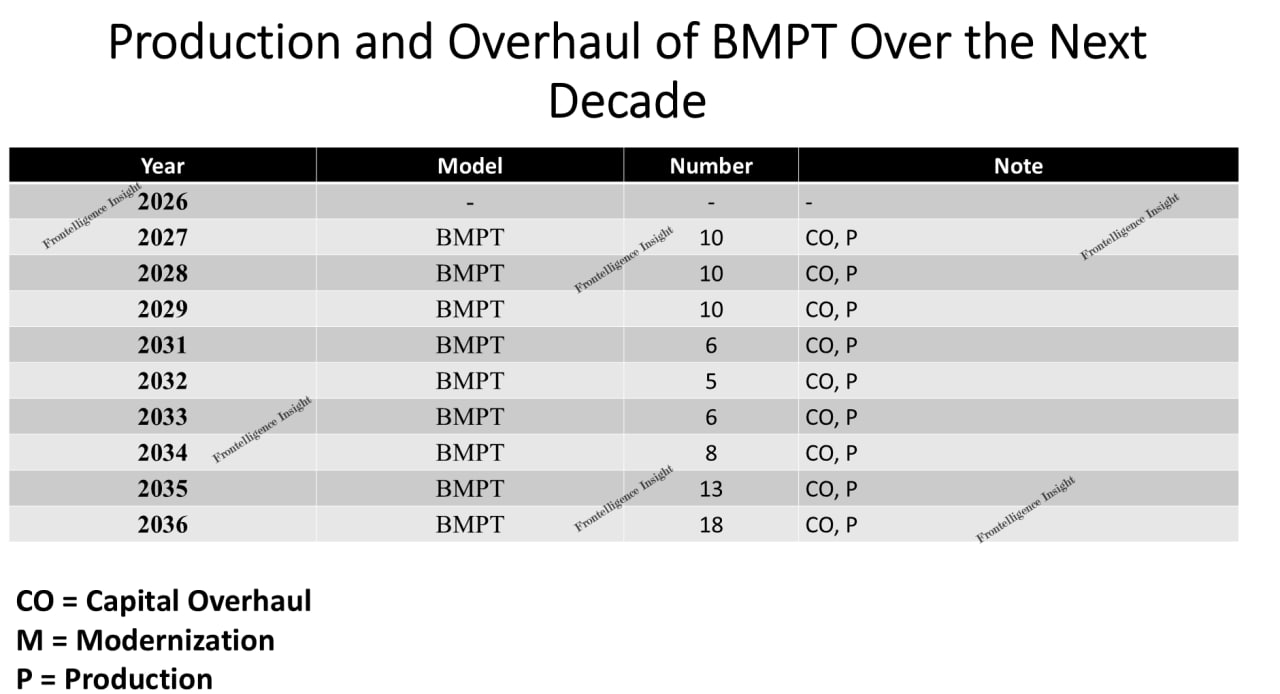 2025-10-12据西方研究人员报道,未来10年内,俄罗斯乌拉尔车辆制造厂计划生产和现代化至少2611辆现代主战坦克。根据一份据称关于俄罗斯转速传感器采购的文件公布的生产计划,2027年至2036年