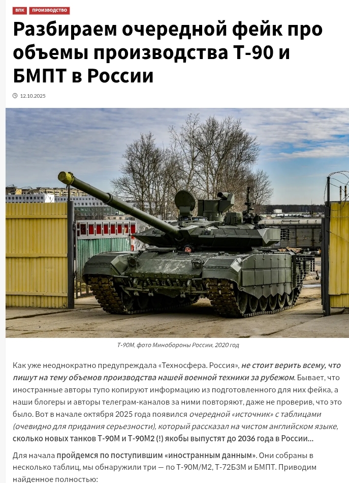 2025-10-17正如俄罗斯国家技术集团论坛多次警告的那样,不要相信任何国外关于我国(这里指俄罗斯)军事装备产量的所有报道。经常发生的情况是,这些外国作者(传媒)原封不动地复制为他们(欧美)准备的假