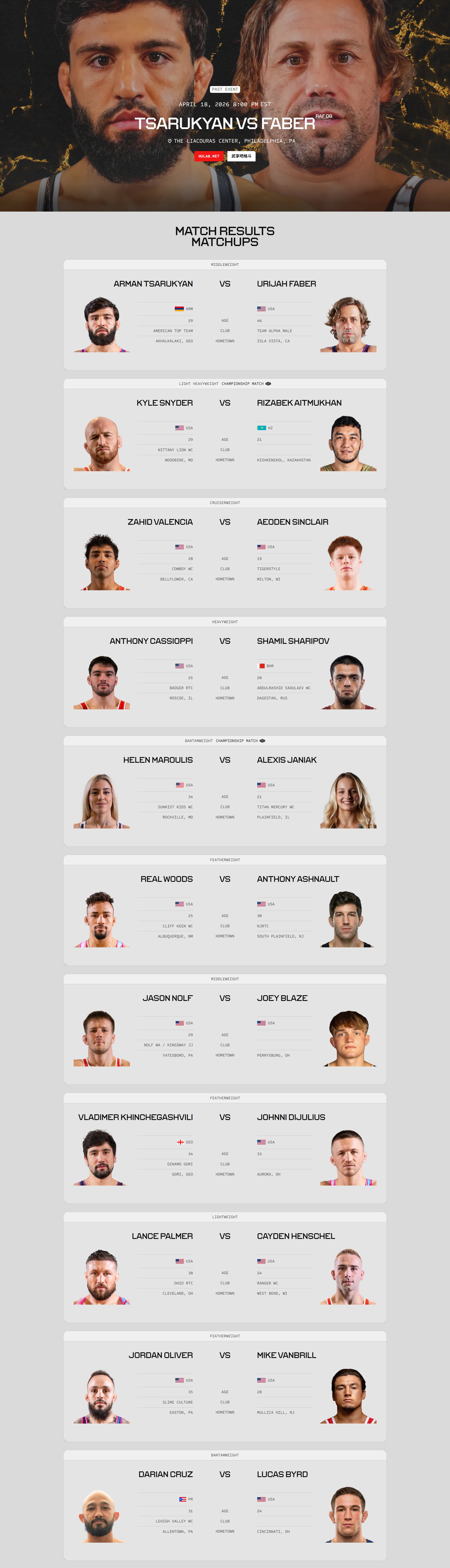 共14张2026年4月19日RAF 08 摔跤赛事