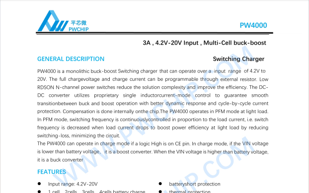 PW4053是一款专为三节锂离子电池设计的升压充电管理集成电路。它采用异步开关架构,集成功率MOSFET,仅需极少的外围器件即可构建完整的充电解决方案,有效减少整体方案尺寸,降低BOM成本。