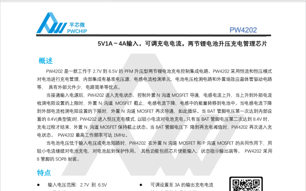 PW4202锂电池充电芯片 8.4V恒压恒流 2节串联充电IC 智能保护模块
