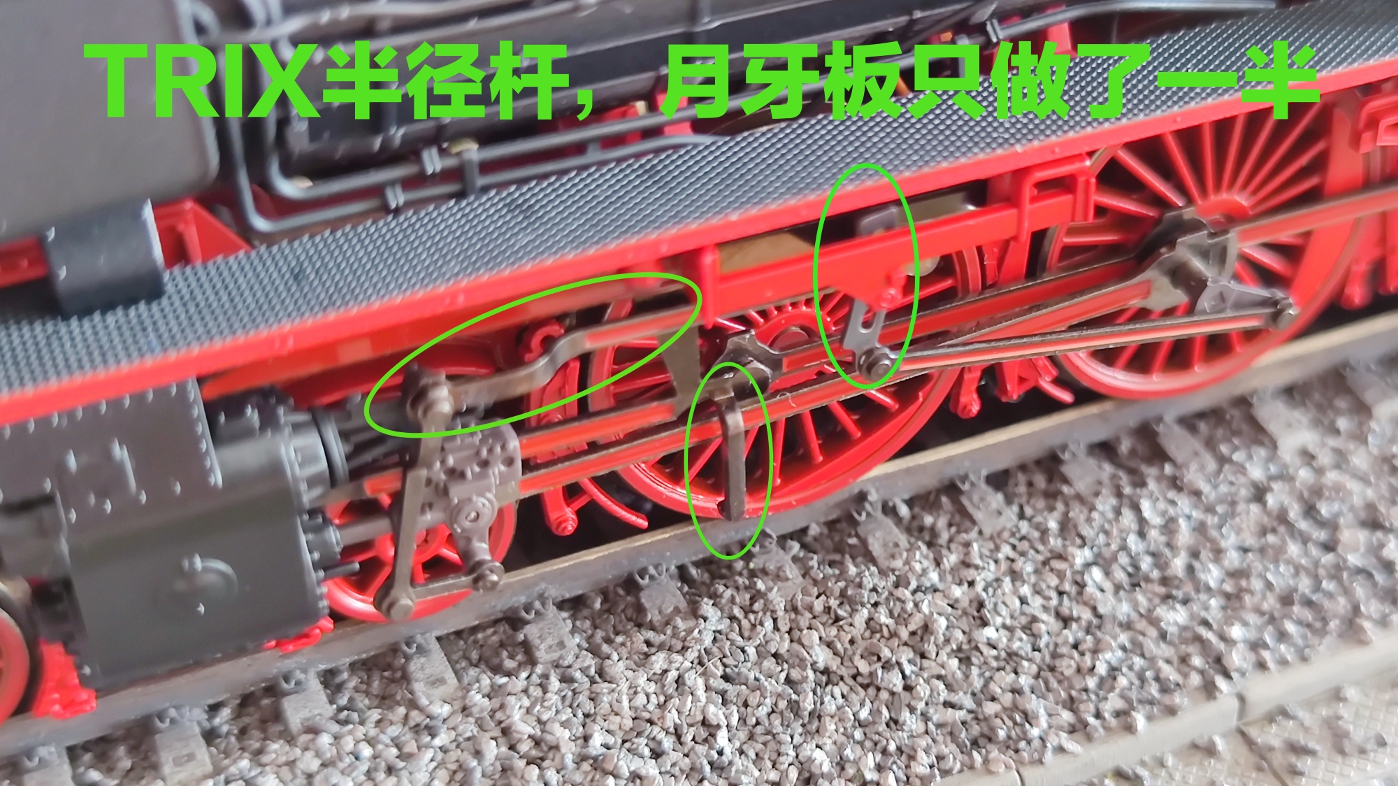 马克林/trix真cs!半径杆,月牙板,十字头这些零件居然只做一半!只做了外面能看见的部分,里面不容易看见的部分一点也没做。比如半径杆与合并杆连接的部分应该是分叉的,trix就只做了外面的那一支,里面