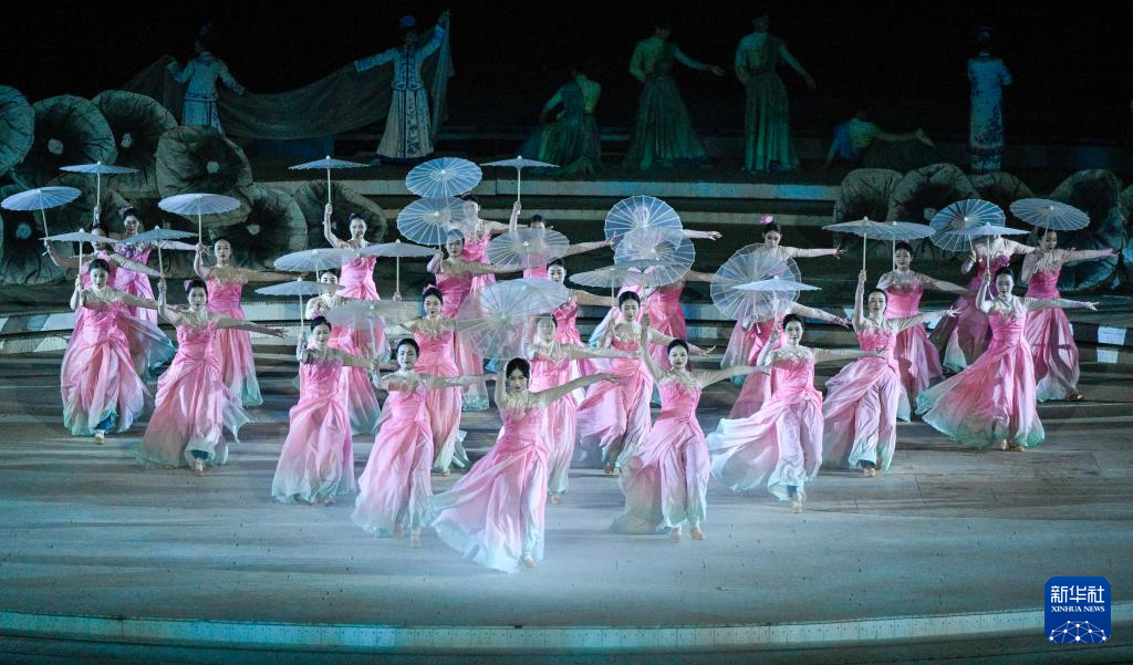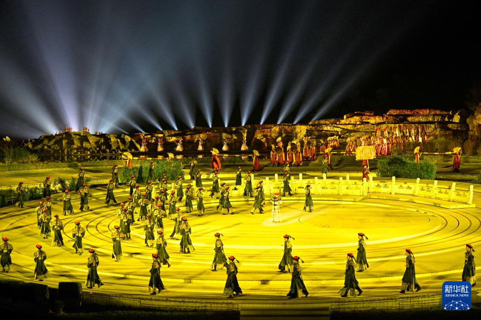 来源:新华社、河北省承德市人民政府 ( 河北日报记者张楠,通讯员白子军、陈楠)4月18日晚拍摄的大型实景演出《鼎盛王朝·康熙大典》表演现场(无人机照片)。 4月18日,大型实景演出《鼎盛王朝·康熙大典