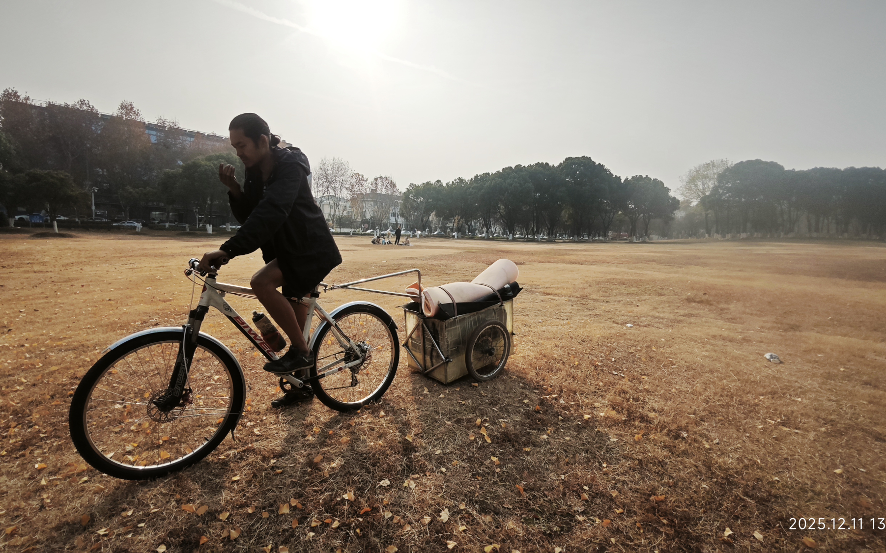 长毛大师介绍他自制的轻便旅行人力半挂车