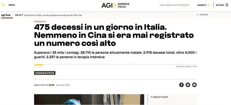 2711次播放 | 08:19【新冠】意大利一日新增死亡475 死亡率8.5% 浙江医疗队和援助物资到达米兰 直击仓库!