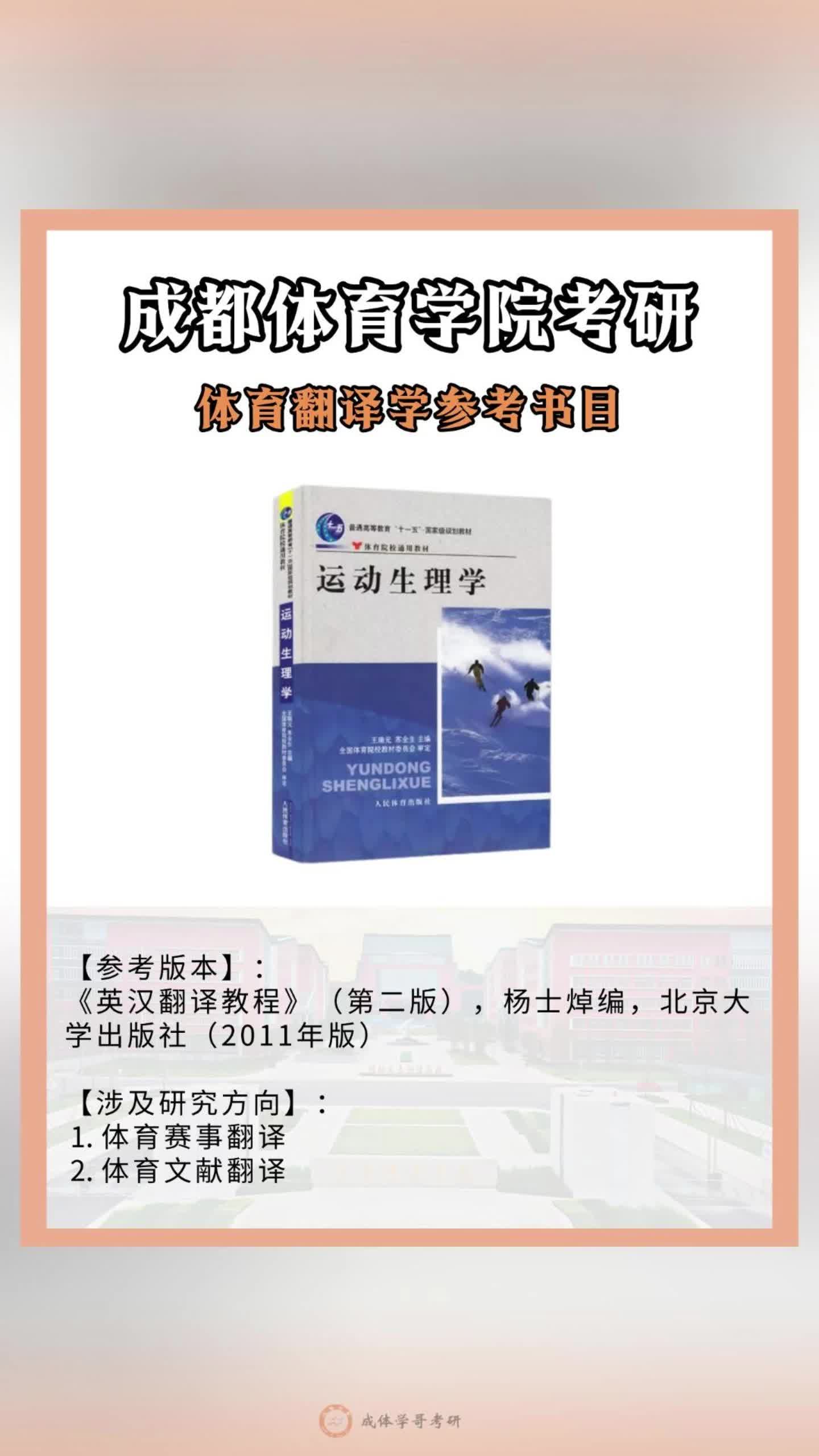 成体考研体育翻译参考书目,成都体育学院考研体育翻译参考书目