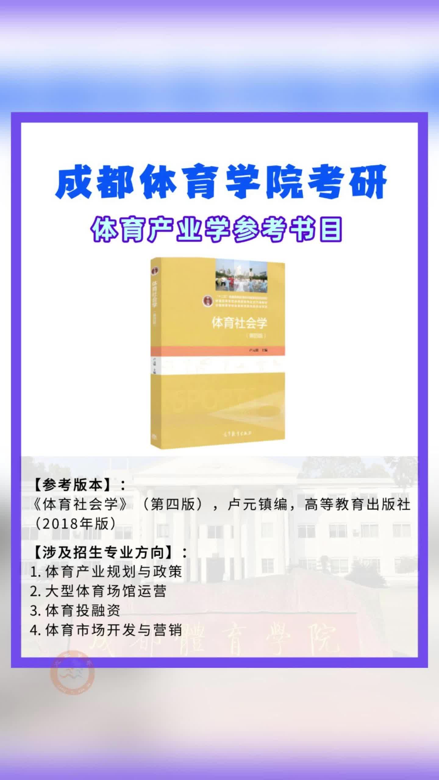 成体考研参考书目,成都体育学院考研615体育产业学初试参考书目