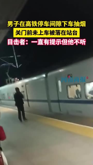 10次播放 | 00:31男子在高铁停车间隙下车抽烟,关门前未上车被落在站台,目击者:一直有提示但他不听