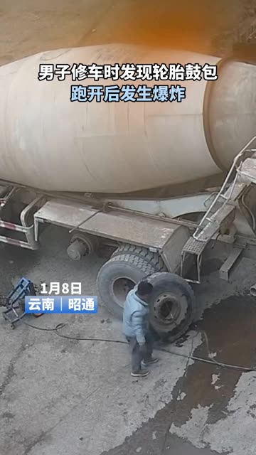 45次播放 | 01:17男子修车时发现轮胎鼓包,跑开后发生爆炸