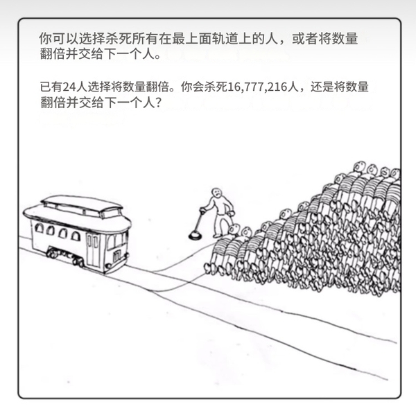 电车难题你在思考电车难题时一边的人数在无限增长中