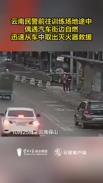 464次播放 | 02:13云南民警前往训练场地途中偶遇汽车街边自燃,迅速从车中取出灭火器救援。