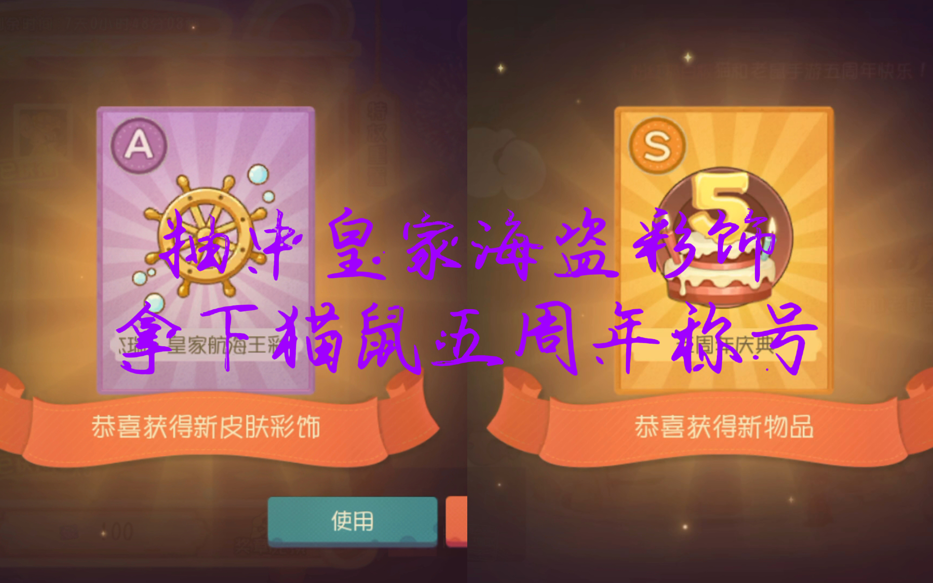猫鼠抽奖后续:抽中皇家海盗彩饰,拿下猫鼠五周年称号