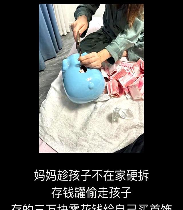 最近一条视频火了,一位单亲妈妈趁孩子上学,偷偷砸开他两个存钱罐,拿走三万块给自己买了个金手镯。小孩放学回家,先是满脸欢喜,因为妈妈给她做了爱吃的大闸蟹。可是看着看着就不对了,妈妈嘴角还挂着得意的笑,问