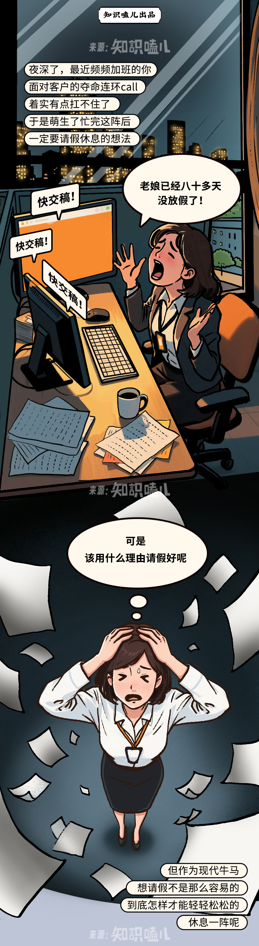 90后一代自诞生之日起,就引起了社会的关注,背负着各种标签,成为一代饱受争议的人。迈入职场之后在现实生活的焦虑下不敢生病、不敢休息、不敢请假。尤其是,请假是需要理由的,一个好的理由是请假成功的基础。但