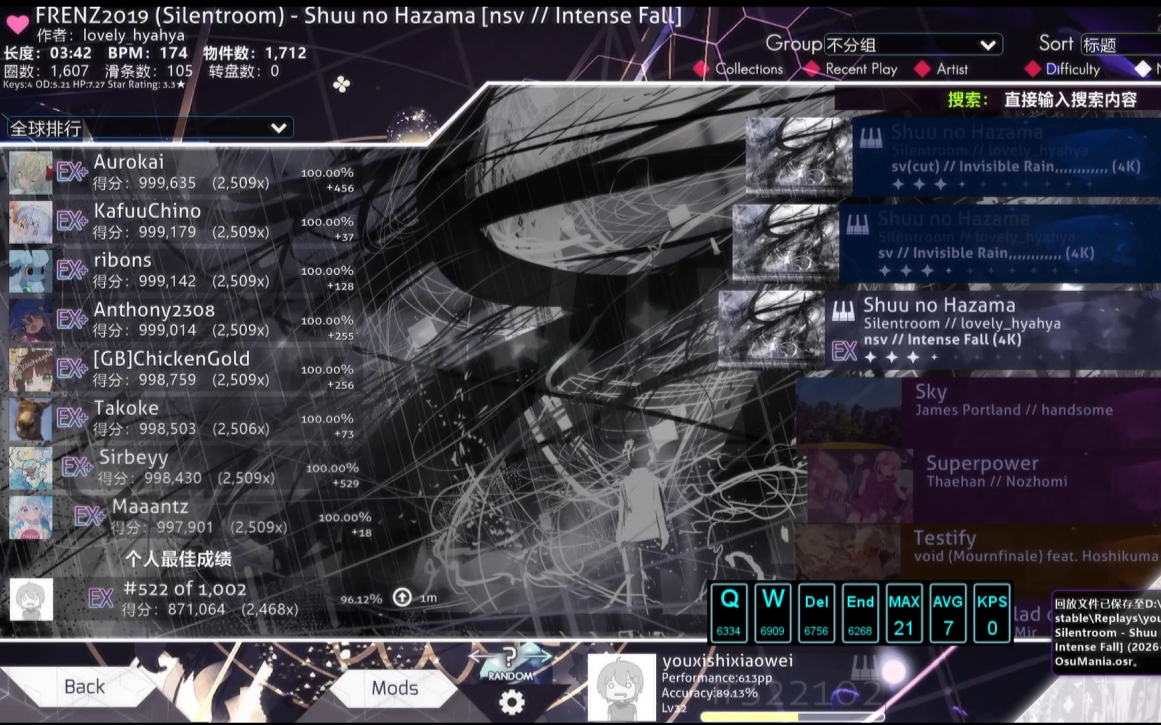 【OSU!/mania】Silentroom-驟雨の狭間