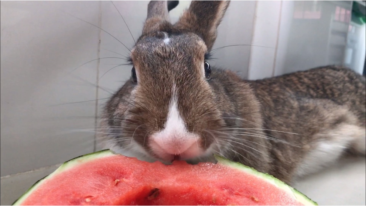 比利时小靓兔-闪电,啃瓜皮我是专业的