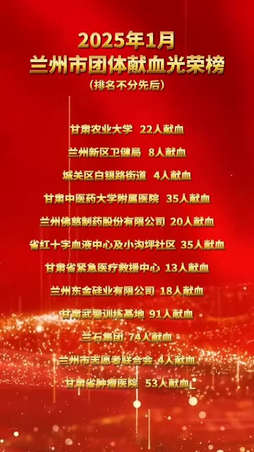 0次播放 | 01:102025年1月兰州市团体献血光荣榜