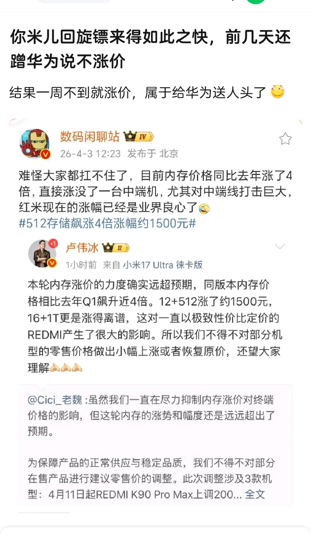 辟谣哥布林刚帮着 小米蹭华为不涨价热度没3天,小米就开始涨价了,还是先从红米开始!