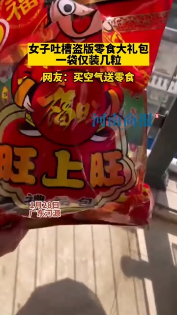 13次播放 | 00:271月28日,广东河源 女子吐槽盗版零食大礼包一袋仅装几粒,网友:买空气送零食