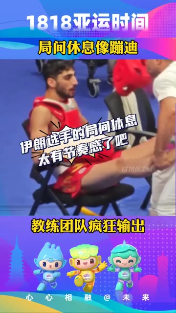 亚运会武术散打比赛,伊朗队局间休息似蹦迪,教练团队疯狂输出