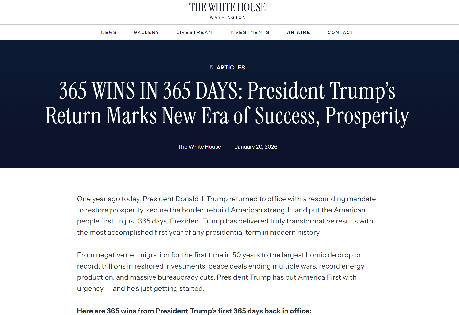 白宫发布记者会:特朗普“365天365项胜利”