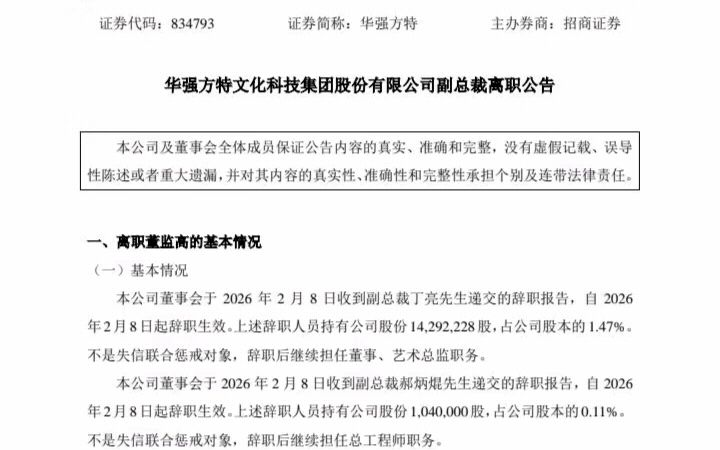 华强方特股票市场公告丁亮导演副总裁辞职,辞职后转成总工程师