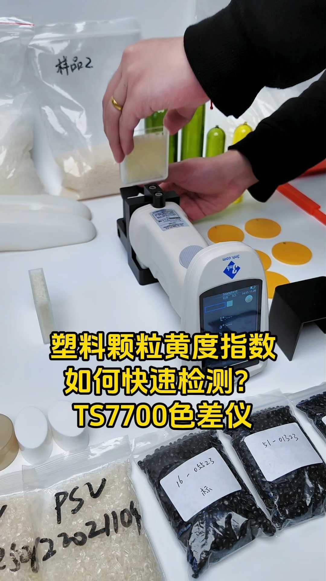 27次播放 | 00:42三恩时色差仪TS7700快速检测塑料颗粒色差及黄度指数!