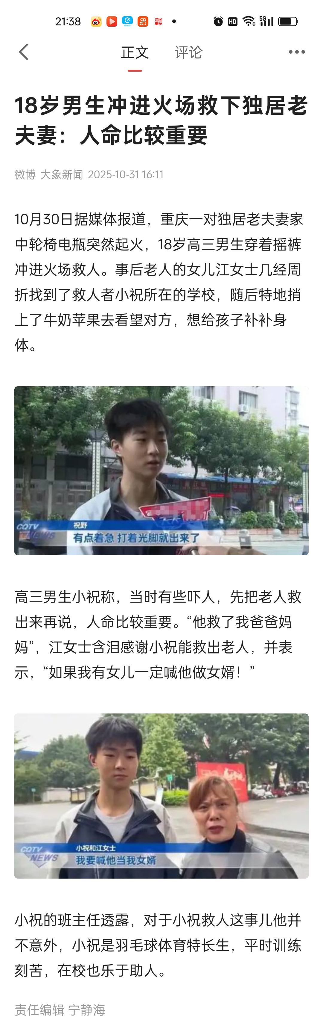 1603次播放 | 07:1518岁男生冲进火场救下独居老夫妻:人命比较重要